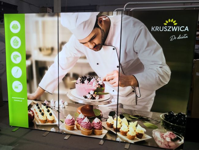 Wbudowane w ramę magnesy pozwalają szybko łączyć kilka kasetonów w jedną, większą ekspozycję – bez dodatkowych narzędzi i akcesoriów. Ten wolnostojący system to efektowna alternatywa dla tradycyjnego roll-upa, idealna do wyróżnienia stoiska w hali targowej czy podczas eventu. Dostępne rozmiary 100x200cm oraz 100x250cm.