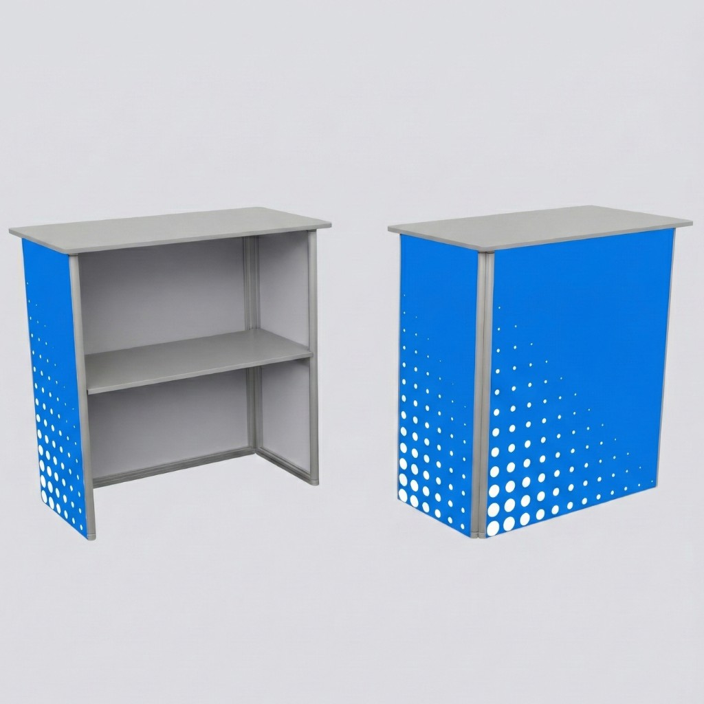 Trybunka reklamowa składana z blatem – przenośna lada eventowa z możliwością personalizacji (łatwy transport)